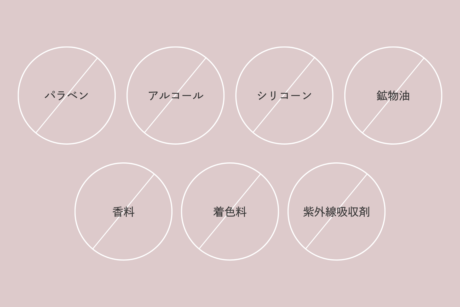パラベン、アルコール、シリコーン、鉱物油、無香料、無着色、紫外線吸収剤すべて不使用。