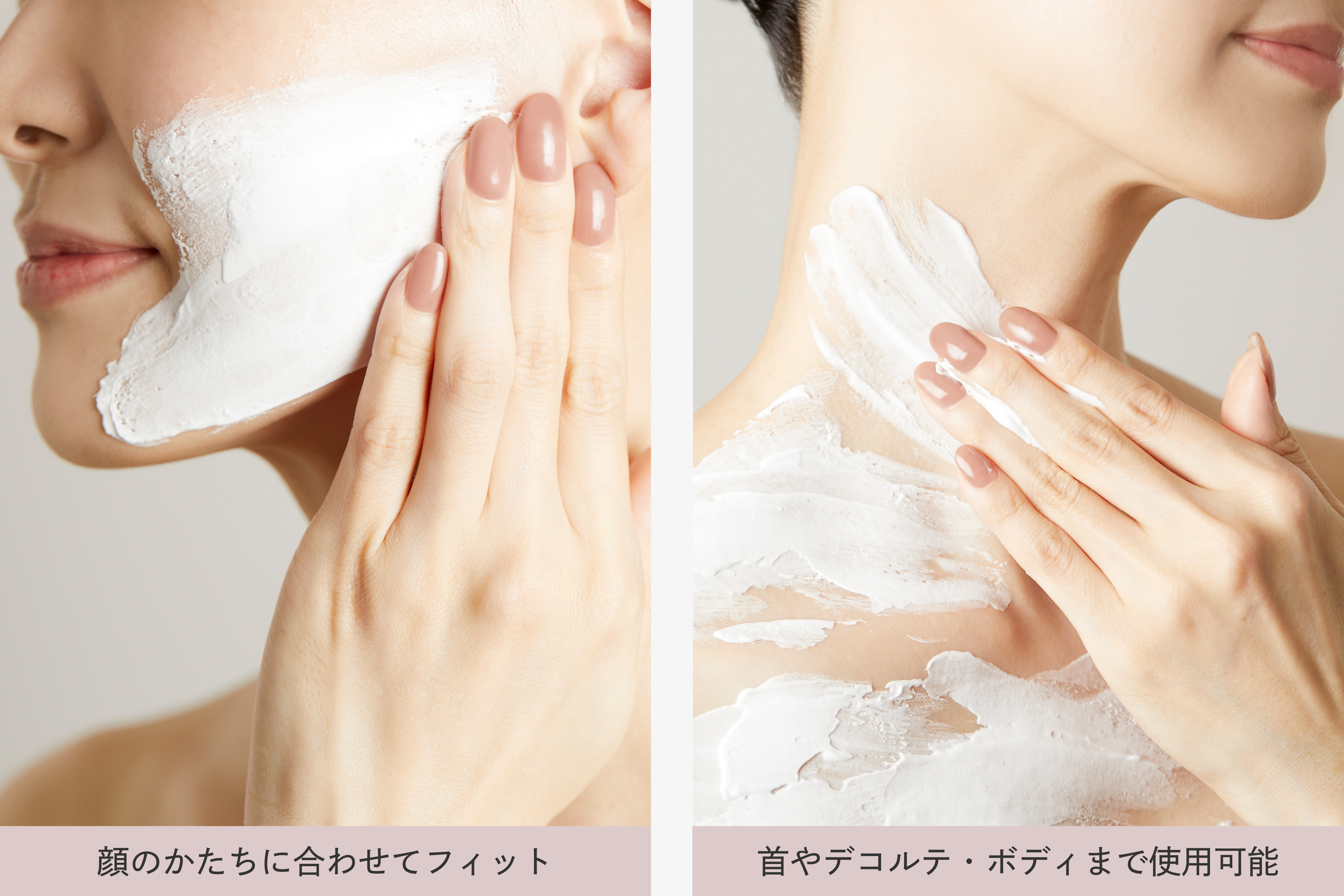 シートマスクでは得られない密着感と高保湿力で、翌朝はもっちりとした満たされ肌へと導きます。顔のかたちに合わせてやさしくフィットするので、目元・口元の細かい部分にもピンポイントで密着します。顔はもちろん首やデコルテ、ボディまで使用可能。
